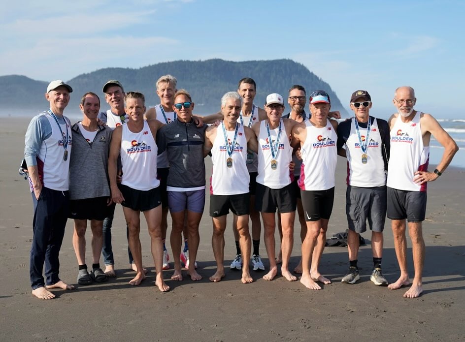 Two Boulder-based teams, male and female ages 50+, won their categories at the epic Hood to Coast relay Aug 22-23. With 12 determined runners, they covered 197 miles from the base of Mount Hood all the way to the beach in Seaside, Oregon.