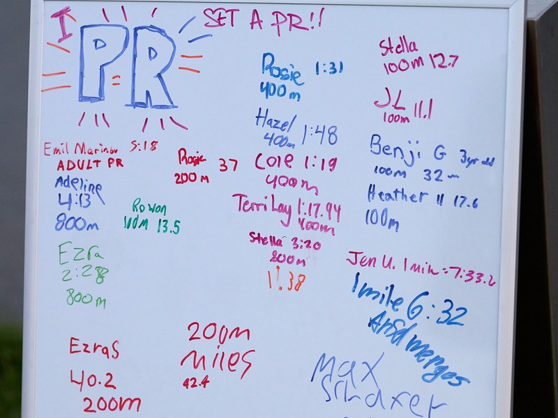 At our third meet of the season, we welcomed 300 registered entries— nearly a record yet again. I heard from over 10 individuals that it was their very first time attending our meet. Our addition of a “PR Board”, a whiteboard where people could write their name and PR, and receive recognition over the microphone, was a hit for all ages! The PR Board celebrates and shares personal achievements, strengthening the bonds across ages, genders, and events.