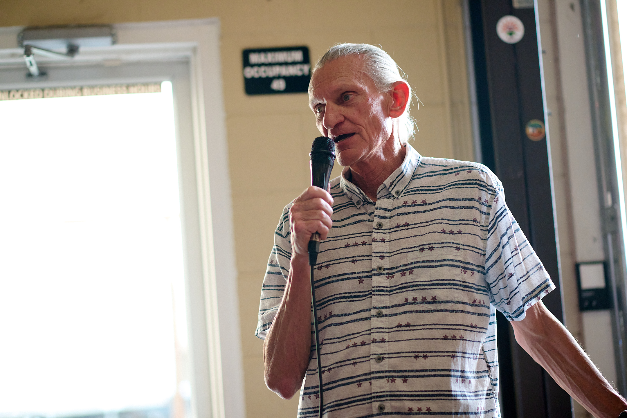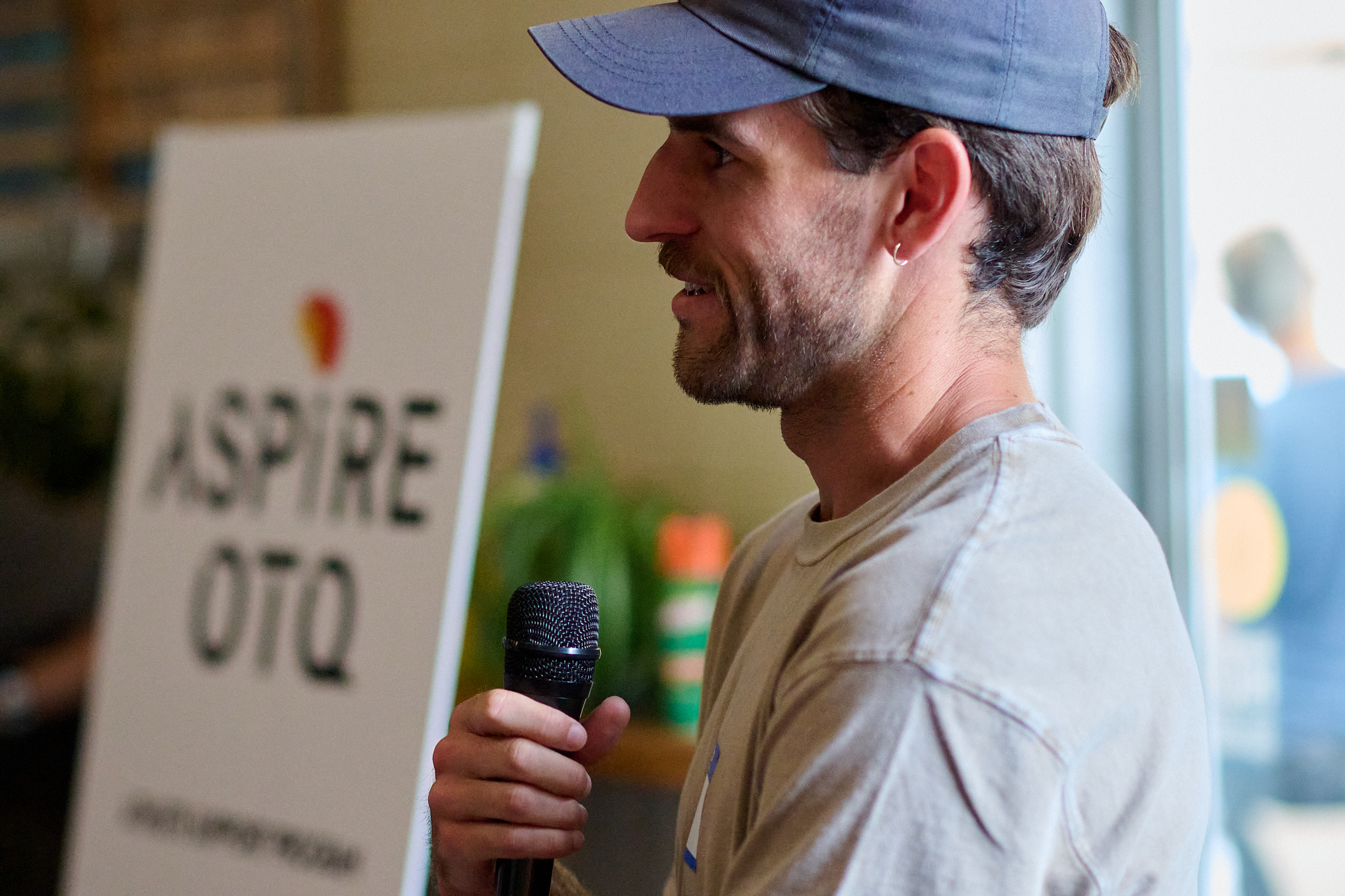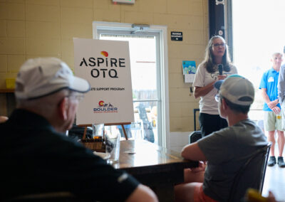 Boulder Road Runner President Chris McDonald introduces the program and importance of supporting under sponsored athletes at the Aspire OTQ Launch Party