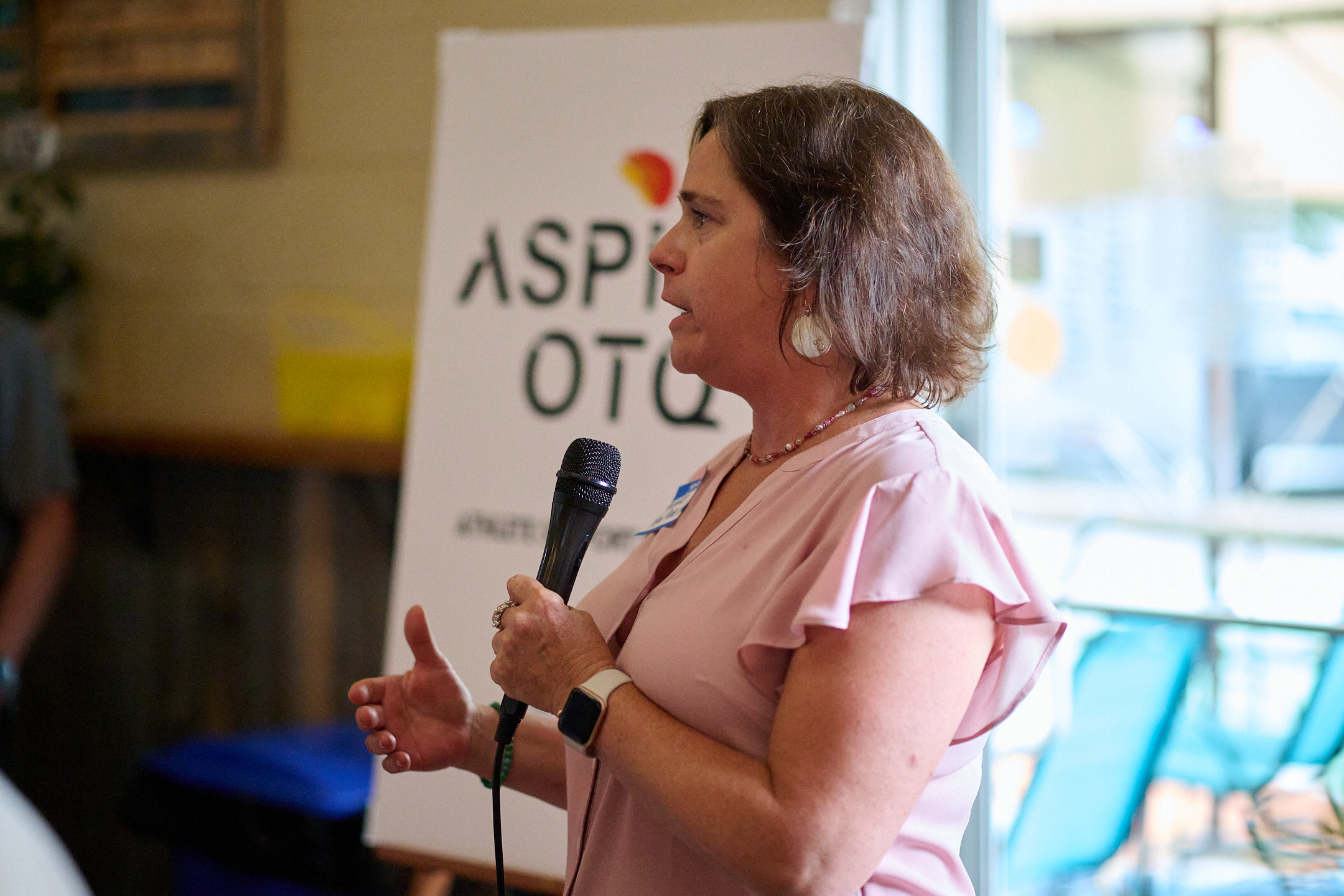 Carrie Verdon speaks at the Aspire OTQ Launch Party