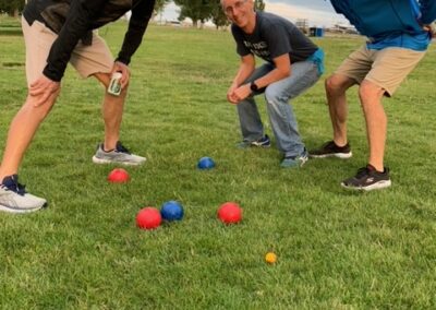 The free food and drinks were popular, as the crowd devoured the delicious spread from Flower Child, as well as beer, wine, non-alcoholic beer, and flavored soda waters. In a shift from running, some members played games, trying their hand at bocce ball and volleyball.